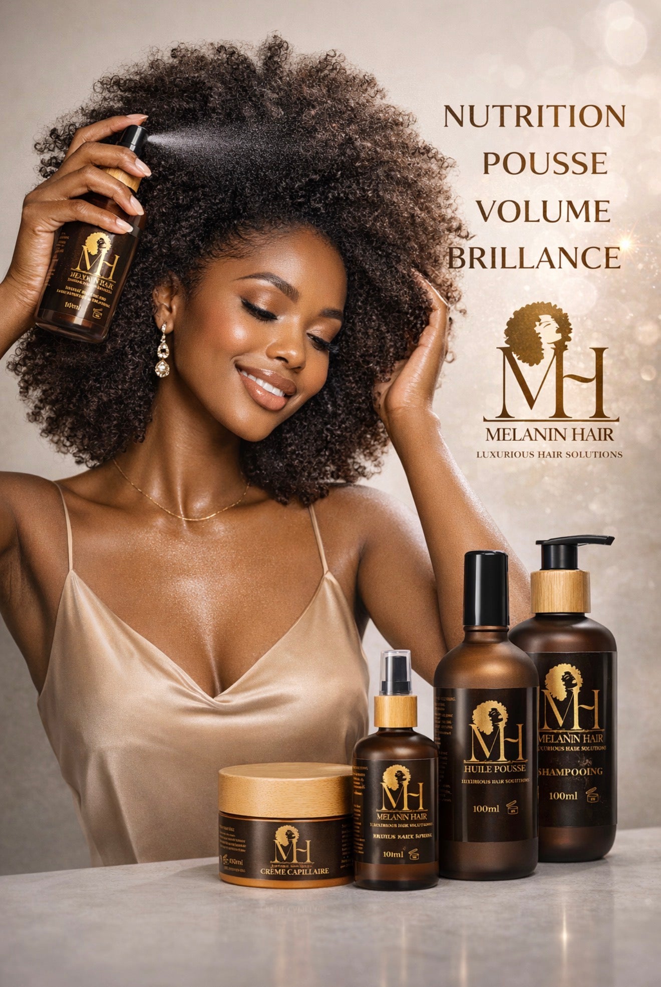 Melanin Hair -Soin & Pousse pour cheveux AfroDécouvrez des soins efficaces pour hydrater, fortifier et faire pousser vos cheveux afro, bouclés et texturés. Crèmes, huiles, shampoing, sprays et accessoires professionnels pour une routine complète et naturelle. Sublimez votre chevelure, révélez votre beauté.